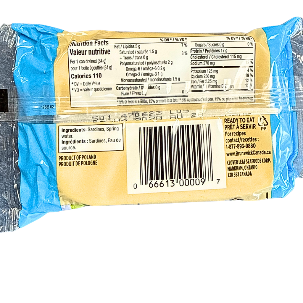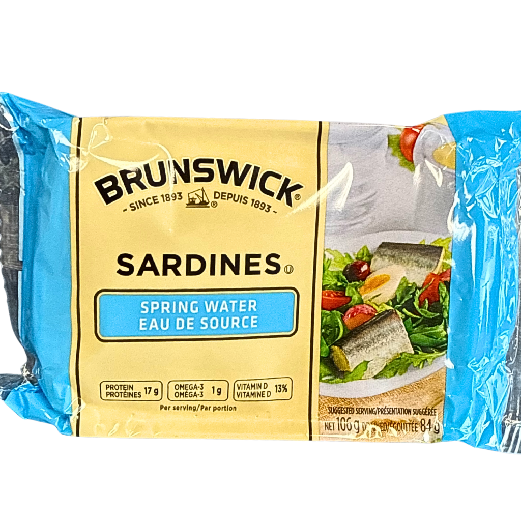 Sardines in spring water by Brunswick.